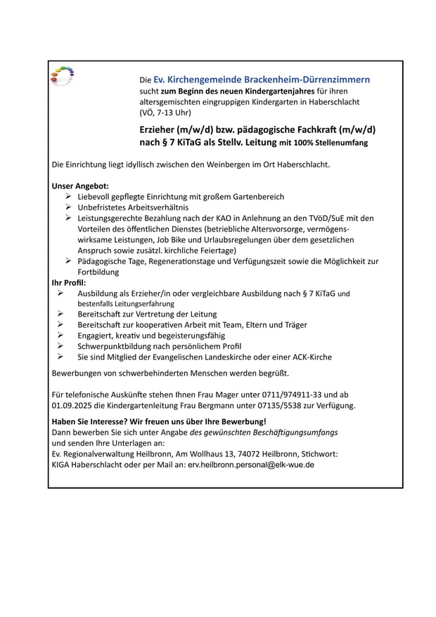 Offene Stellen im Kirchenbezirk Heilbronn-Brackenheim