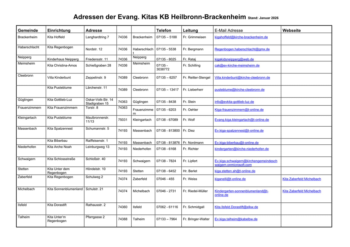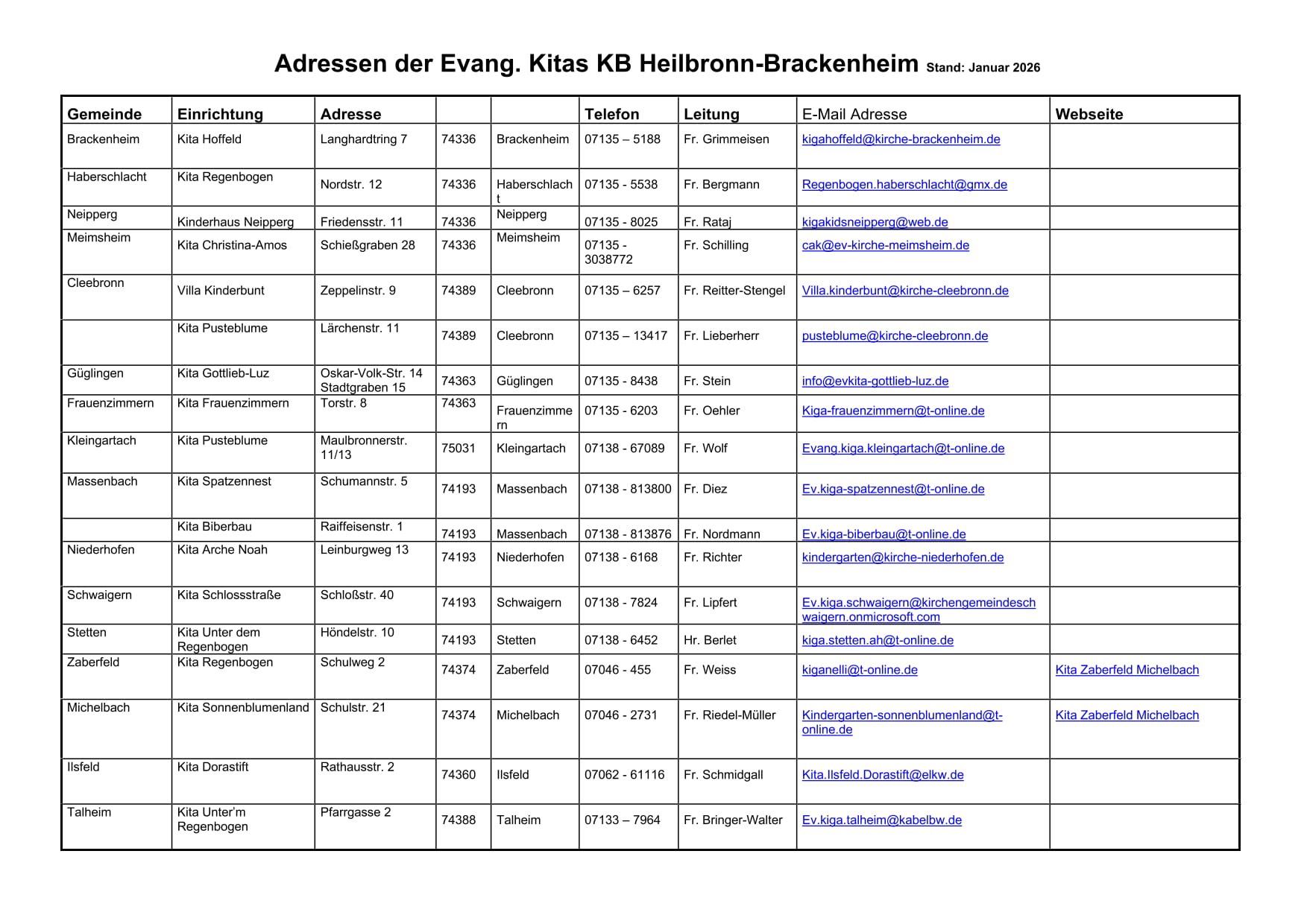 Unsere Kindertageseinrichtungen im Kirchenbezirk Heilbronn-Brackenheim